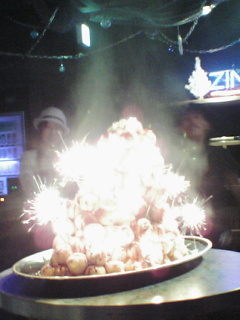 そして、ミニシュークリームをイッパイ積み上げたケーキで1周年のお祝いタイム。